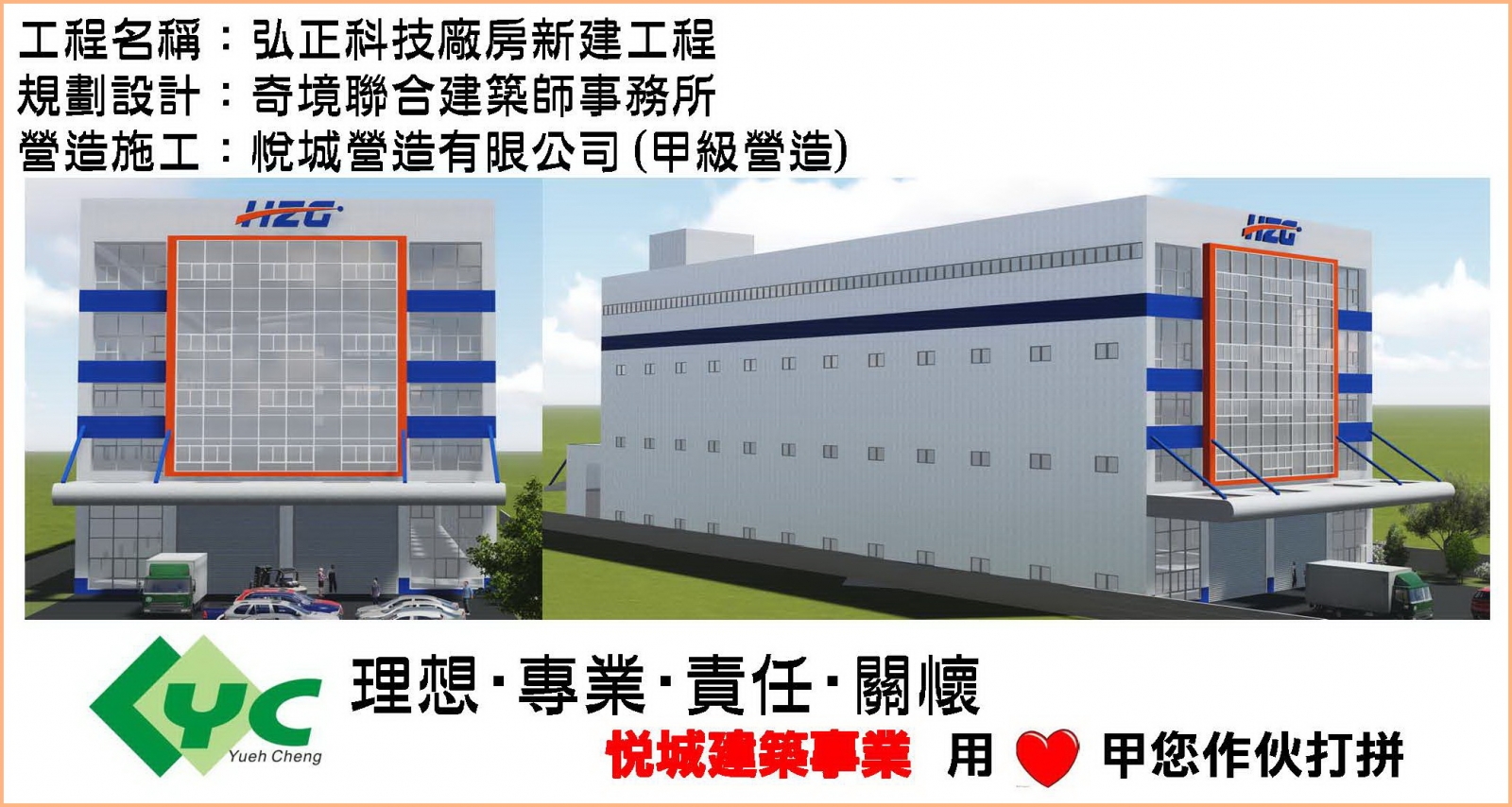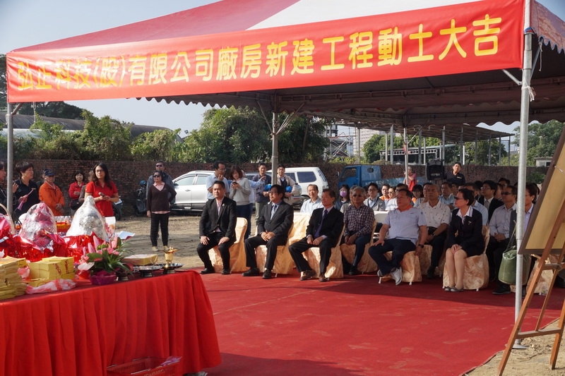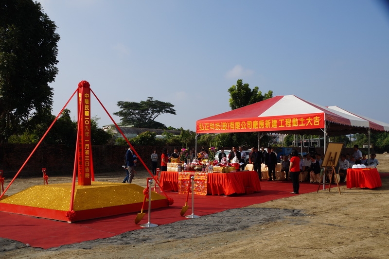 感恩弘正科技集團陳董事長對悅城建築事業的肯定與支持,讓弘正的台灣二廠新建工程由悅城營造來承攬服務,今日良時吉日,舉行新廠動土典禮,祈祝工程動土興工一切平安順利,也祝福弘正集團鴻圖大展弘正永昌。 弘正科技集團成立於85年3月6日,主要經營項目為汽機車零件製造,主要產品為機車用CVT,離合器,